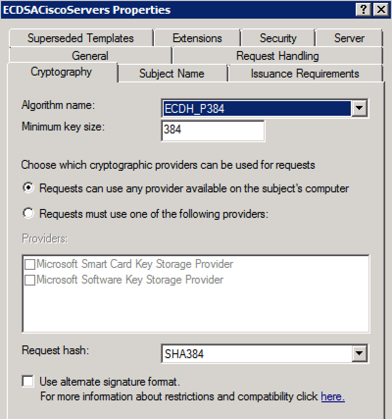 Select 2008, name your Template and go to the Cryptography TAB