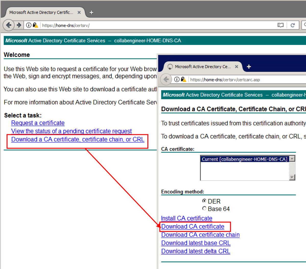 This operation does not add the certificate template to the Web enrollment page, but that is fine, because we are going to use the following method