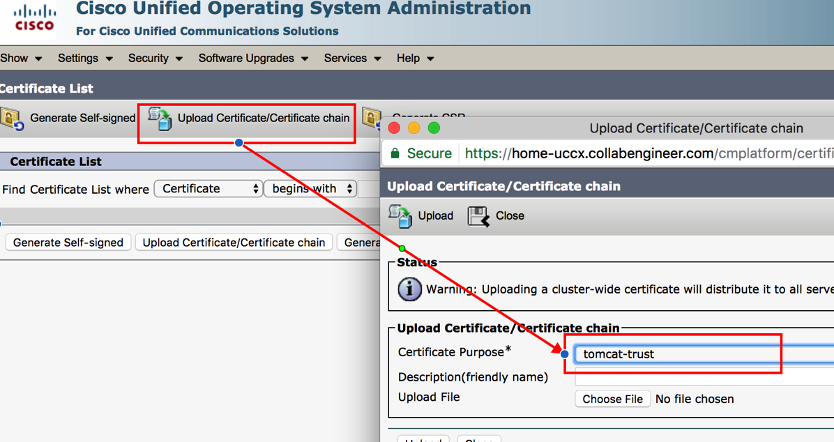 Make sure this one gets Uploaded to the Tomcats-Trust option