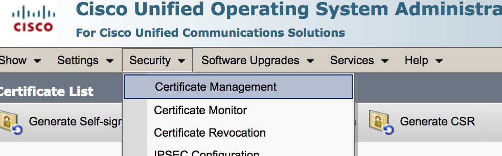 At this point and before you move forward go to UCCX Os Administration and record all the requirements needed for the Tomcat-ECDSA certificate… in other words, this is what you will use to generate the certificate request. UCCX OS Administration –> Security –> Certificate Management