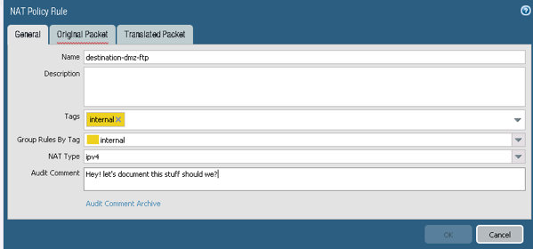 *** It’s different the way NAT is done in PANOS, but I guess it takes time to accommodate and understand how it works, the destination address translation is what really triggers the actual NAT, in this case notice that we don’t change anything from our Source Address Translation.