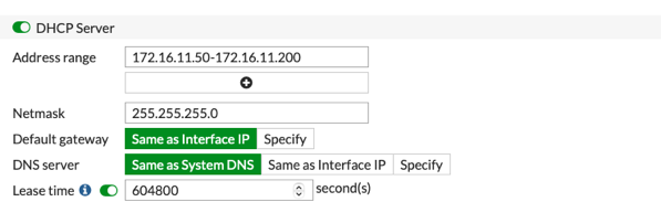 Adding DHCP server for LAN hosts, I decided Fortinet will be the DHCP server for my internal hosts. There was no need to modify much other than the range of IP addresses I want DHCP to lease at any given time.