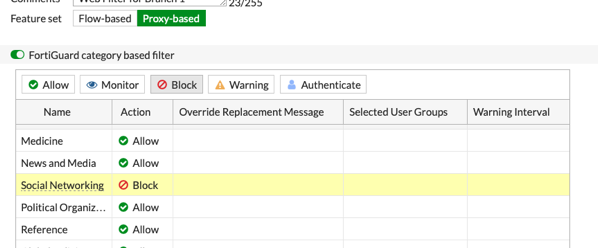 Under the FortiGuard Category Section, let’s find all Social Media.