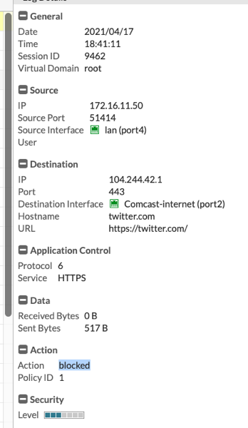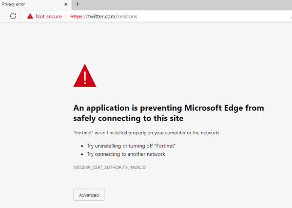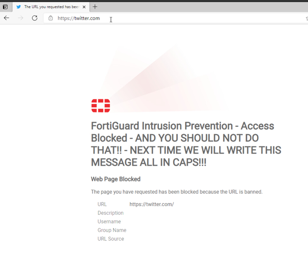Trying Login into Twitter - I get the following error - which is telling me that Fortinet is in the way and blocking me based on my actions.