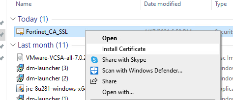 I need to add the CA Certificate of this FortiGate to the computer to see the Block messages. So I decided to download it. Here is where you go to download it