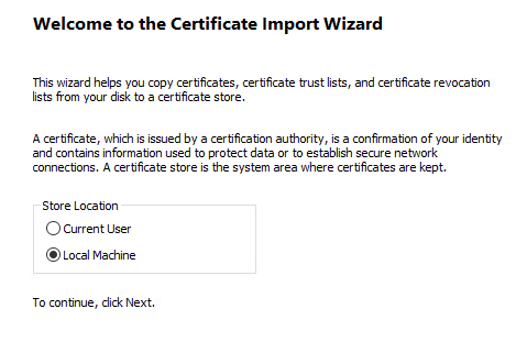 Once you do that, you may want to select the Store you want to place it in; I did that as follows. Make sure it is under the Trusted Root CAs.