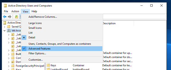 Where to get it from? easy, go into Active Directory Users and Computers –> Click View –> Select Advanced Features