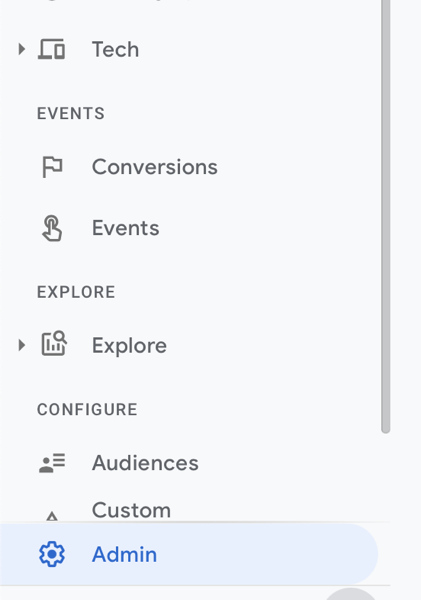 Going to the Admin Section of Google Analytics