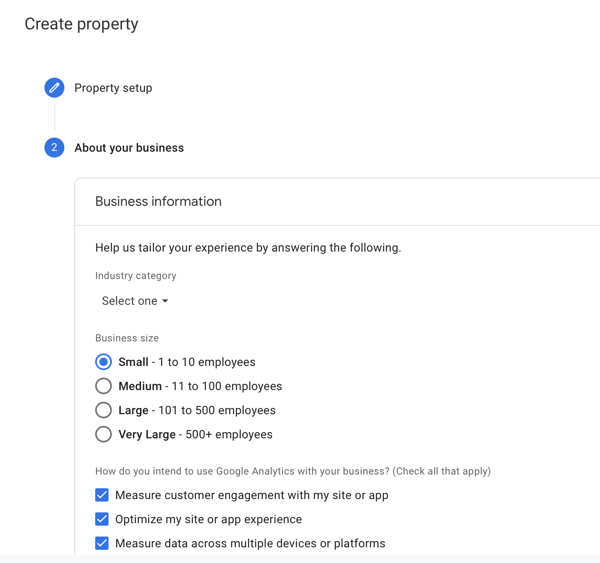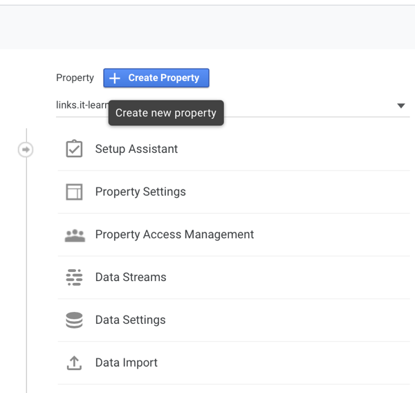 Select the account that you want to host all the Google Analytic properties –> Click where it says Create Property
