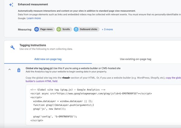 This is basically giving me all the code that I need to add to my “property” in this case my static website - I need to open up my index.html file and add that code to it