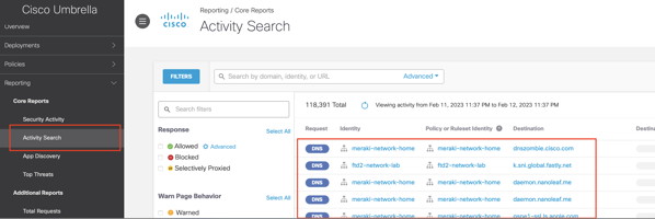 At this point everything should work and information should be logged to the Umbrella Console. I believe that you will start seeing DNS requests after a few minutes, usually 5 to 15 minutes (not fun I know, but the information will be there)