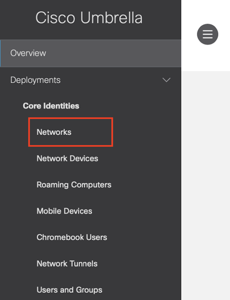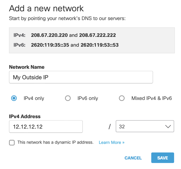 We are going to do a few things in Umbrella, and we are going to start defining our Network IP - This is the IP address or IP addresses that you use to go out to the internet.