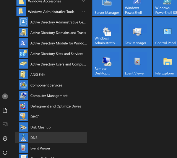 Usually, this one will be under Start Menu –> Administrative Tools –> DNS