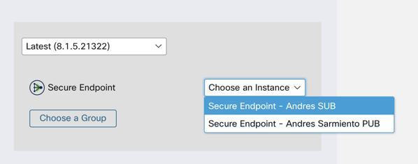 For the Secure Endpoint Section – you can keep all installations with the version that you select. If your Secure Endpoint Subscription is already integrated into SecureX you will see the Choose Instance Dropdown menu with your Secure Endpoint integrations.